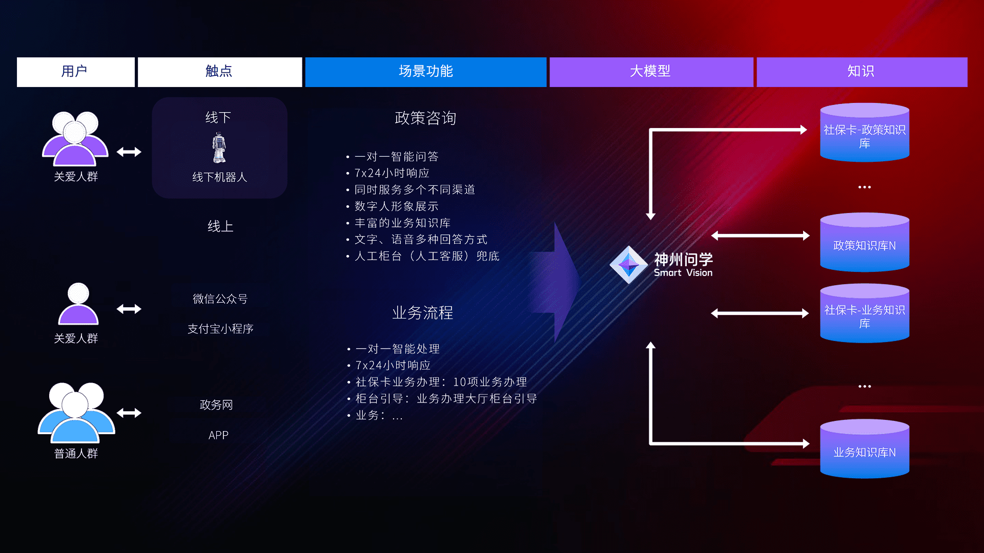 在服务大厅部署客服机器人,,在线上应用和小程序配置客服数字人,,,724小时为群众解答常规问题,,,,客服机器人无法处理的,,转现场人工处理。。